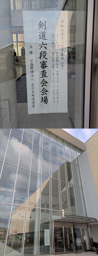 先週の土曜日(11/15)にエスフォルタアリーナ八王子で行われた全日本剣道連盟剣道六段審査会(東京)があり、六段審査に初挑戦ながら合格を頂くことができました。五段審査までは各都道府県剣連主催のローカルな審査会なのですが、六段審査以降は全国区の審査会となり、地方から新幹線や飛行機を乗り継いで来られ(中には会場のある都市に前泊入りして)、審査に挑まれる方も大勢おられます。勝手の違う初めての全国審査に、前夜から緊張しっぱなしでしたが、日ごろ、地元道場の先生方や剣友たち、工芸大剣道部の学生たちに稽古をつけてもらっているお陰で、とても落ち着いて実技審査および日本剣道形審査に臨むことができました。昨日は、地元剣道関係者、母校剣道部OB会、工芸大剣道部OB会・現役剣道部学生たちから、数多くのお祝いのLINEを頂きました。改めて、皆さまありがとうございますm(__)m 六段の段位に恥じぬよう、また二年半後の錬士(Kendo Instructor)の称号審査に向け、さらに五年後の七段審査に向けて今後も精進を重ねて参る所存にございますので、ご指導ご鞭撻のほど、よろしくお願い申し上げますm(__)m