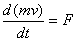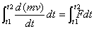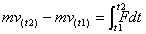 と表せる。これは、運動量の時間変化率が物体に作用した力に等しいことを表している。さらに、両辺を時間で積分して、