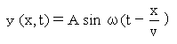 で表されるとき、この振動がxだけ離れた場所Pに到達するにはx/νだけの時間がかかる。従って、P点では波源より常に時間がx/νだけ遅れて、波源と同じ振動が起こる。このため波源からxだけ離れた場所Pでの、時刻tにおける変位y(x,t)は、時刻tよりもx/vだけ前の時刻(t−x/ν)での波源の変位に等しい。すなわち、