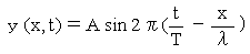 と表される。この式を正弦波の方程式という。正弦波の方程式において、Aは振幅、