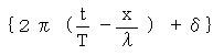 の部分を波の位相という。波の山のところでの位相はπ/2であり、波の谷では位相は−π/2である。さらに、x=0、t=0における位相δを初期位相といい、この場合、位相を表す式は