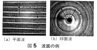 | 波面が平面であるような波を平面波といい、波面が球面であるような波を球面波という。 |